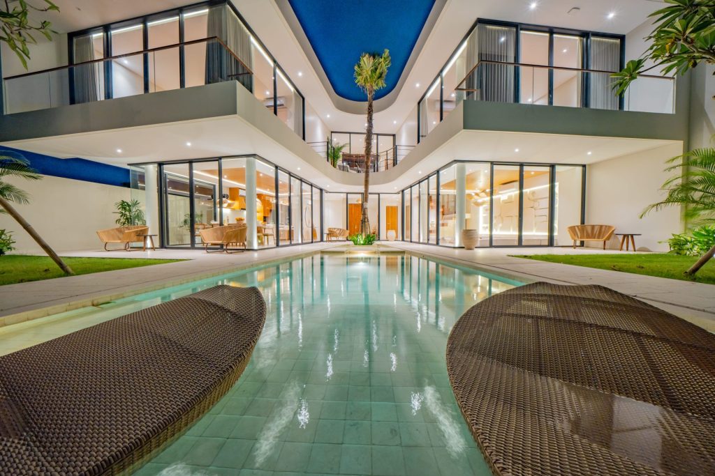 This architect-designed 4-bedroom villa in the heart of Umalas, Bali, offers 655 sqm of